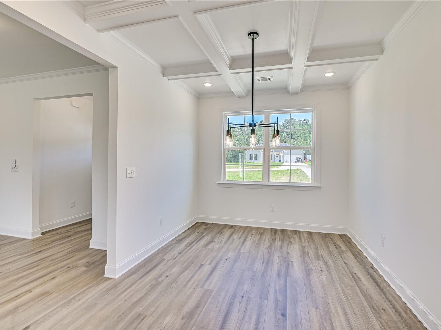 - A formal dining room (13×10) under coffered ceilings adds an elevated touch of elegance.
