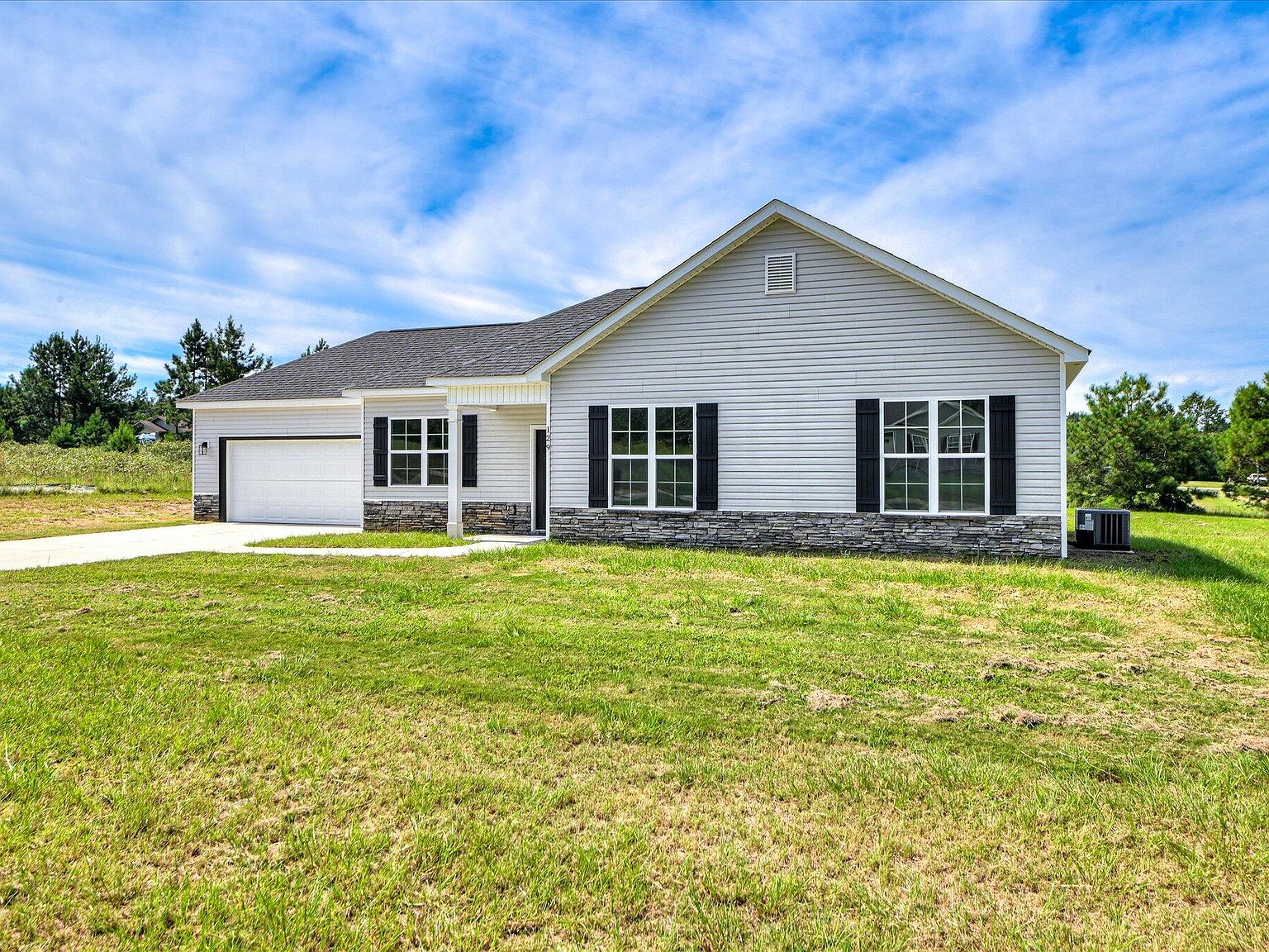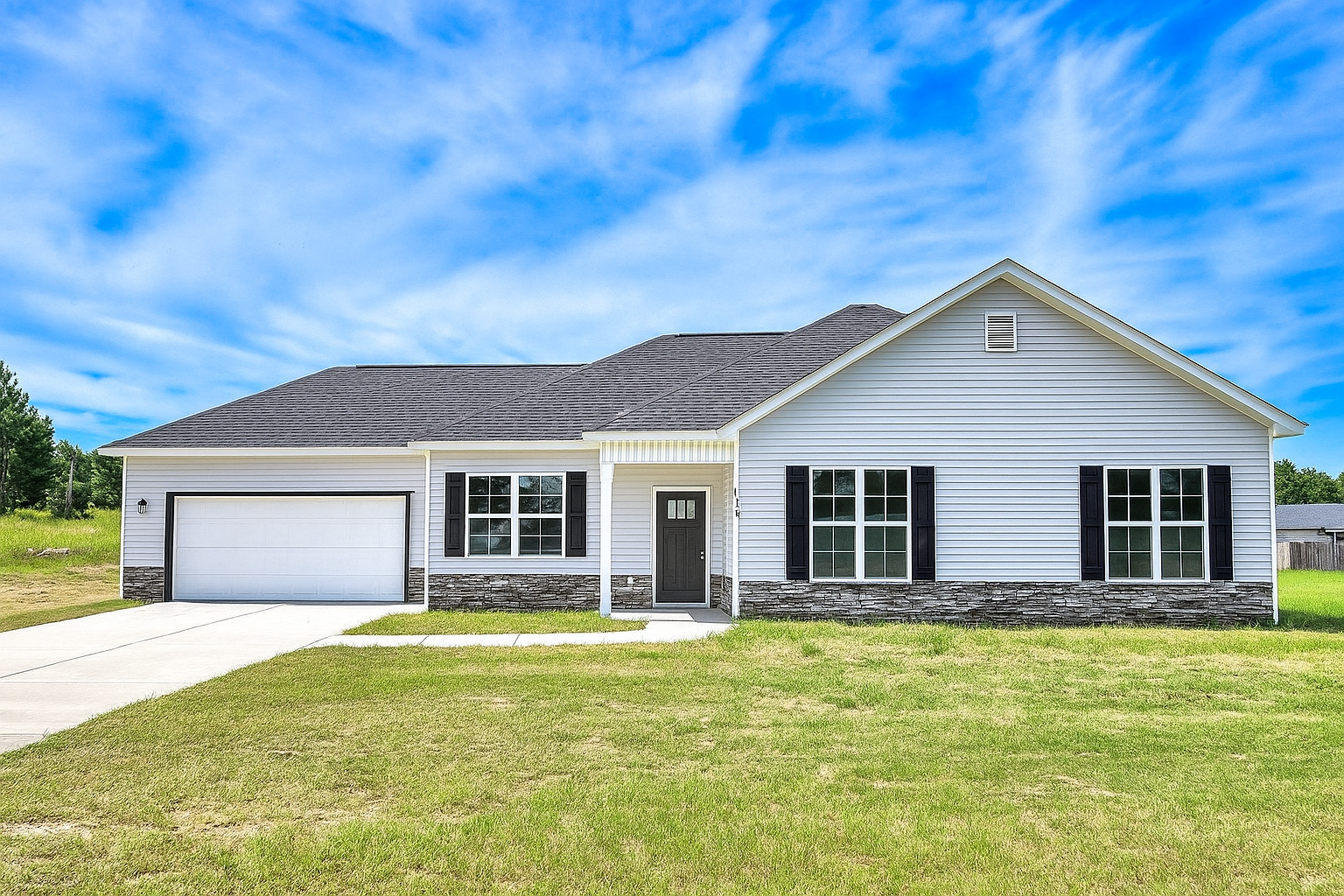 - The home’s exterior is finished with low-maintenance vinyl siding and tasteful stack-stone accents for a refined curb appeal.