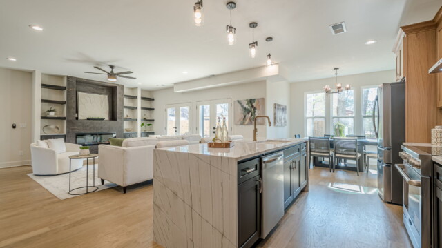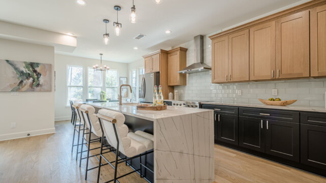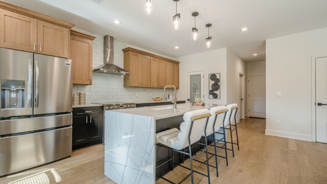- Spacious gourmet kitchen with large island (standard with high-end finishes).