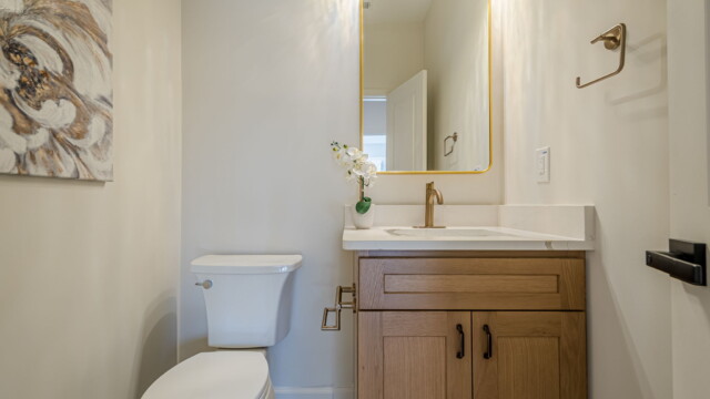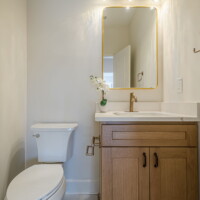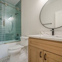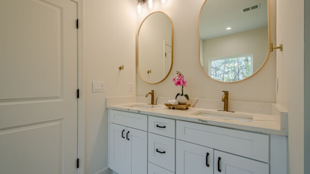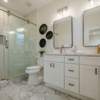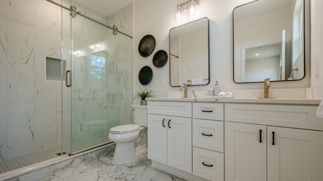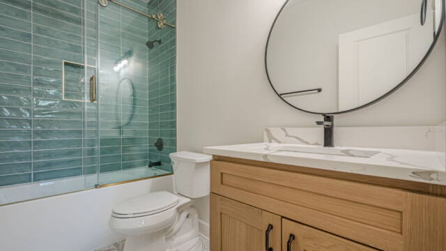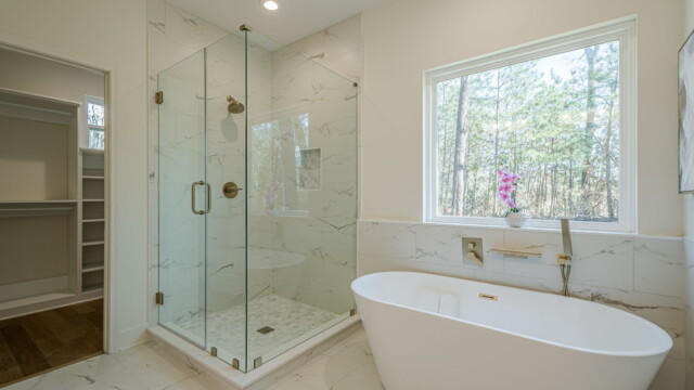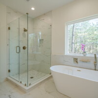 - Elegant and modern bathroom finishes with tile showers/tubs.